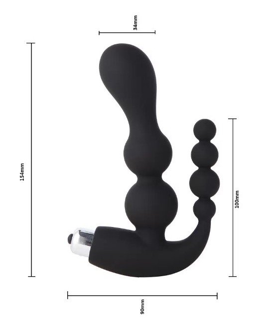 ANAL VAGINA BLACK DOUBLE THRUST BEADED VIBRATOR & ANAL BUTT PLUG – DUAL PLEASURE TOY