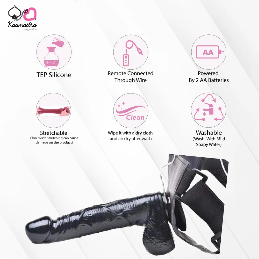 Experience thrilling intimacy and enhanced performance with the Black Hollow Strap On Penis Dildo Vibrator for Men. Perfect for men dealing with ED, stamina challenges, or size confidence, this strap-on combines realistic length with a powerful vibrating core — giving your partner deep, satisfying sensations while you remain in full control.